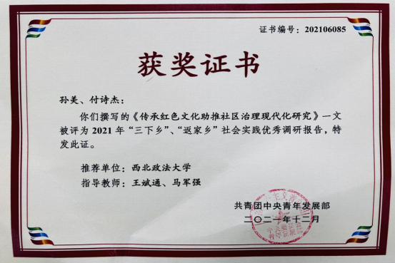 法治公司、法硕公司暑期“三下乡”社会实践团队调研报告荣获共青团中央青年发展部优秀调研报告