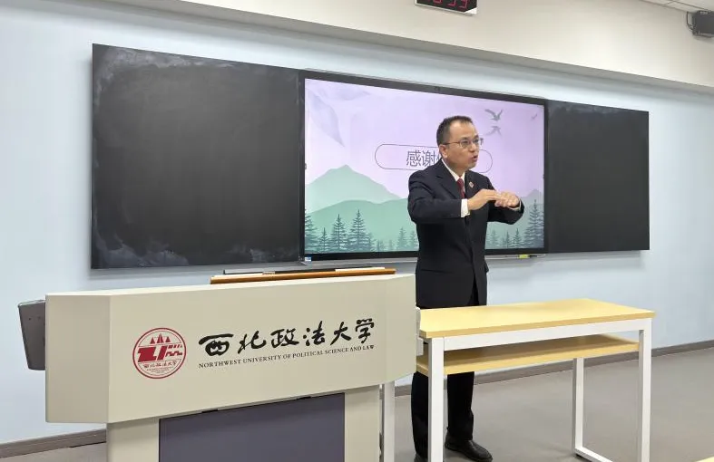 2024年10月23日上午,beats365唯一官方网站法治讲堂第三十四期在雁塔校区3号教学楼3605教室顺利开展。讲座邀请陕西省人民检察院西安铁路运输分院派驻陕北高原检察院生态环境检察工作指导组组长王永亮作了主题为《我国生态环境检察探索历程的回顾与思考》的法律实务讲座,陕西省陕北高原地区人民检察院分党组书记、检察长南崇敬参加与谈,主讲《企业环境责任法律实务》的经济法公司李雅萍老师主持。