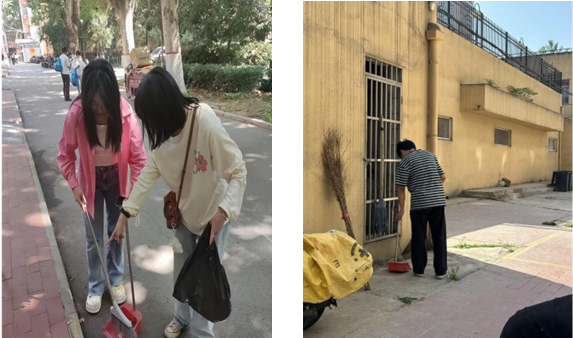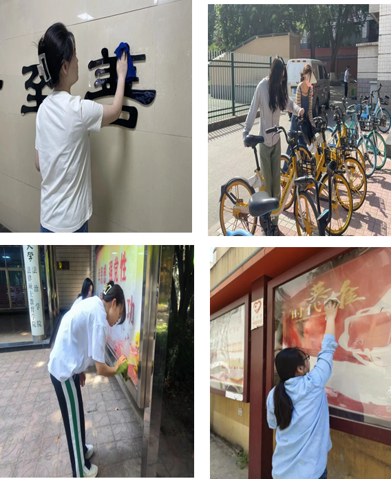 劳动期间,同学们干劲十足,团结一致,充分展现了“不怕苦、不怕累”的劳动精神。同学们分组行动,各司其职,整理摆放道路上停放的自行车,清扫运动场西侧区域路面上的垃圾,清理粘贴在墙面和宣传栏上的小广告,擦拭各楼宇指示牌。在同学们的共同努力下,墙壁、街道焕然一新。