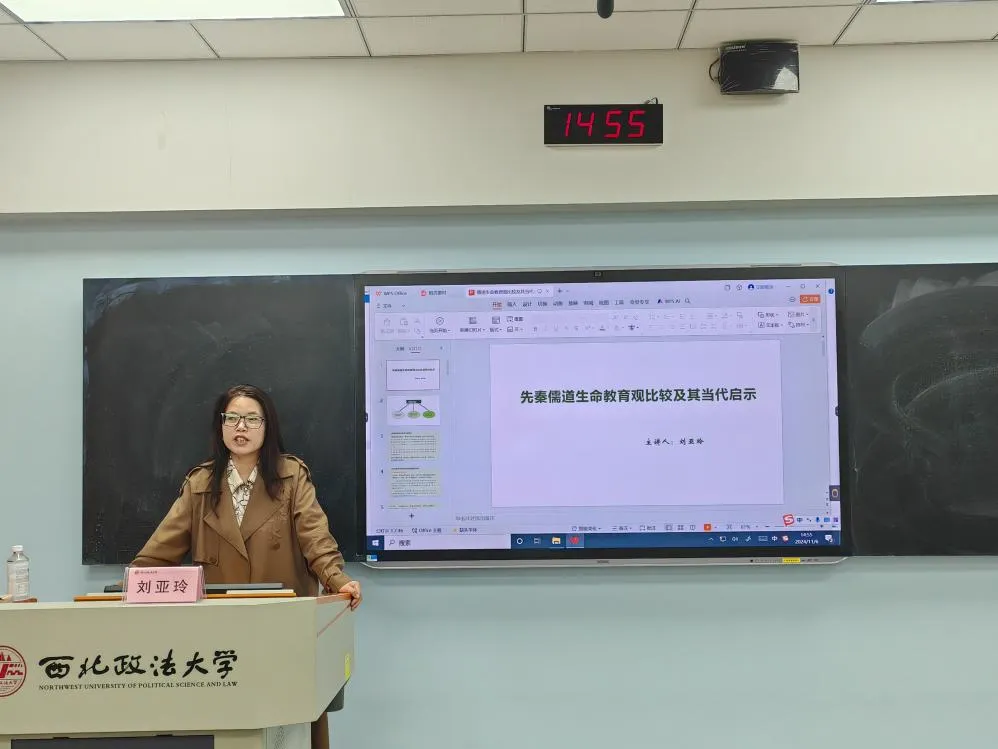 为帮助员工树立正确的生命观、培养同学们的责任感和道德感,11月16日下午,beats365唯一官方网站在雁塔校区3号教学楼3506教室举办“先秦儒道生命观比较及其当代启示”主题讲座。讲座由马克思主义公司教授刘亚玲老师主讲,辅导员郝源主持讲座。