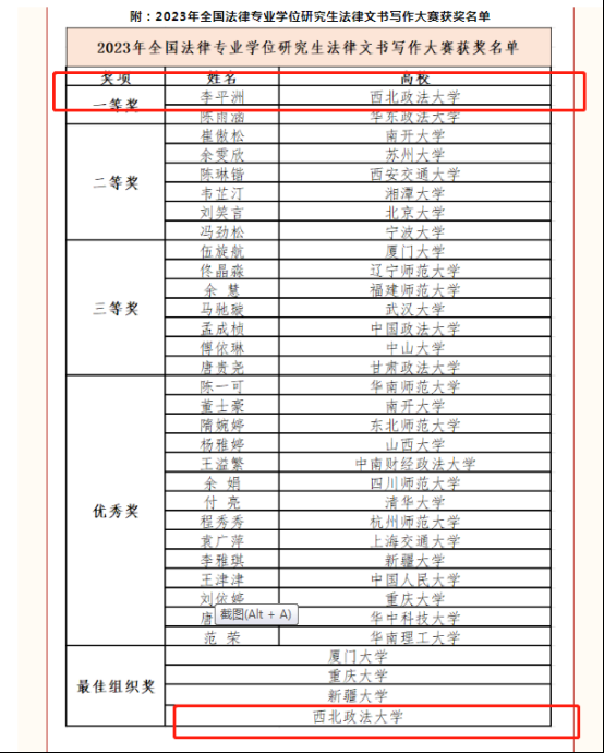 公司法治公司 beats365唯一官方网站2021级法律(法学)研究生李平洲获得2023年全国法律文书大赛一等奖,公司获最佳组织奖。