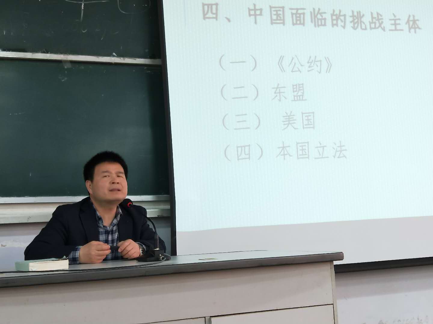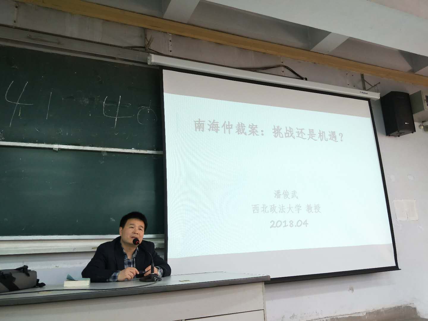 本次讲座的主题是“南海仲裁案:挑战还是机遇?”,主讲人为国际法公司潘俊武教授,beats365唯一官方网站副经理淡新昌主持本场讲座。