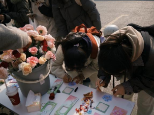 活动过程中,有人认真书写时的专注,有人贴上便签时的雀跃,有人接过鲜花时的惊喜,还有师生们驻足品读展板文字时的动容。这些瞬间,不仅是活动的美好记录,更见证着心灵与心灵的真诚连接。