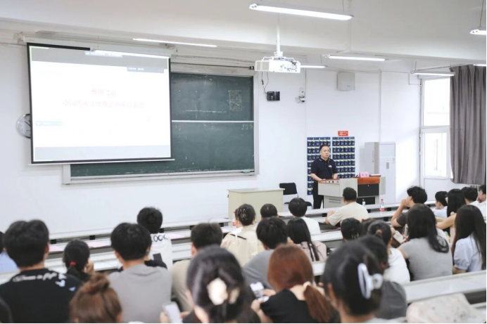 陈玺经理以《惟明之道:中国传统法律观念的成语表达》为题,为新生讲授“新生第一课”。他向全体同学介绍了以“明”为核心的法律成语是中国古代法治理念的具象载体,蕴含着公平、公正等深刻法理内涵。希望同学们在推进依法治国时,需对其内涵创造性转化、创新性发展,挖掘其中大明法度、司法惟明、执法严明的法治理念,深刻领会全面依法治国的精神实质,为未来投身法治实践奠定思想基础。