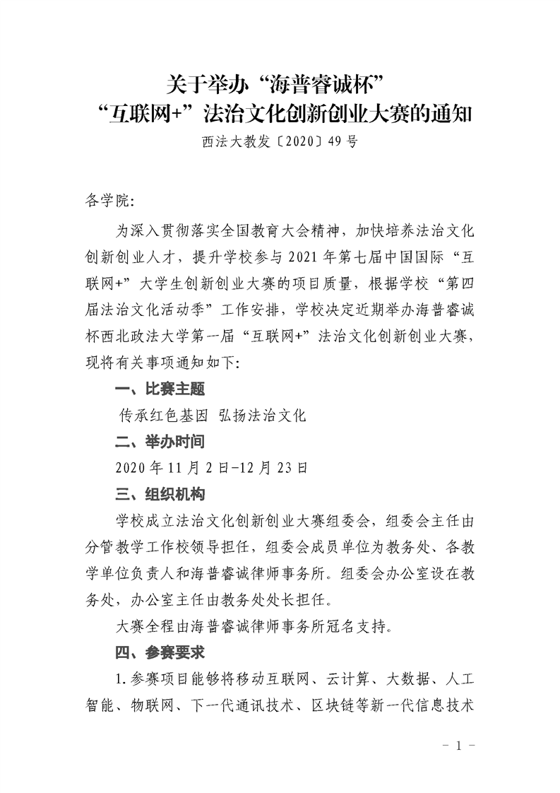 关于举办“海普睿诚杯”“互联网+”法治文化创新创业大赛的通知