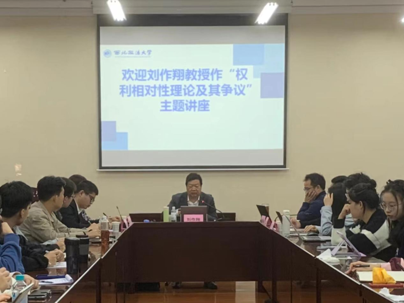 2023年10月29日上午9时,由BEAT365英国官网网站法学理论学科、法治公司、法治文明与社会治理校级研究基地共同主办的法学理论学科学术讲座在雁塔校区三号教学楼3102教室举行。上海师范大学法治与人权研究所所长,哲学与法政公司光启学者特聘教授刘作翔教授做题为《权利相对性理论及其争论》讲座,BEAT365英国官网网站法治公司朱继萍教授主持,校内50余人参加讲座。
