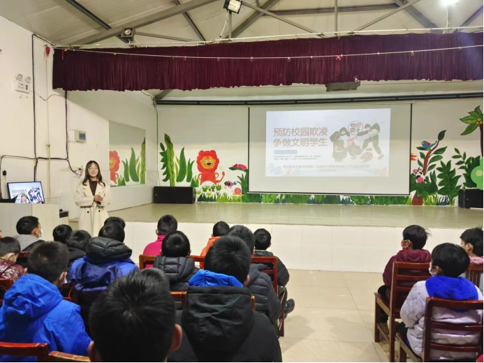 第二十九员工党支部书记郝佳薇为儿童村的孩子们介绍了校园欺凌的含义和表现,指出校园欺凌包括肢体欺凌、言语欺凌、社交欺凌等形式通过列举日常生活中可能遇到的事例,以案释法,强调校园欺凌的危害和后果,叮嘱孩子们在遇到欺凌时要做到临危不乱、安全第一、及时报告播放以“对校园欺凌说‘NO’”为主题的法治宣传视频,进一步加深孩子们对校园欺凌的认识和理解。