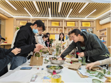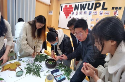 党的二十大报告指出,中国式现代化是物质文明和精神文明相协调的现代化,物质富足、精神富有是社会主义现代化的根本要求,精神上的富有需要高校教育的助力,新时代高校美育工作尤为重要。美育是坚持立德树人、培养社会主义建设者和接班人的重要方面。12月6日,公司在雁塔校区青衿驿站(七号员工公寓“一站式”员工社区)举办“袋”自然回家—植物拓印与手绘主题沙龙。本次活动由西安艺舍美学馆晓明老师主讲和进行创作指导,公司2023级辅导员老师马军强主持。