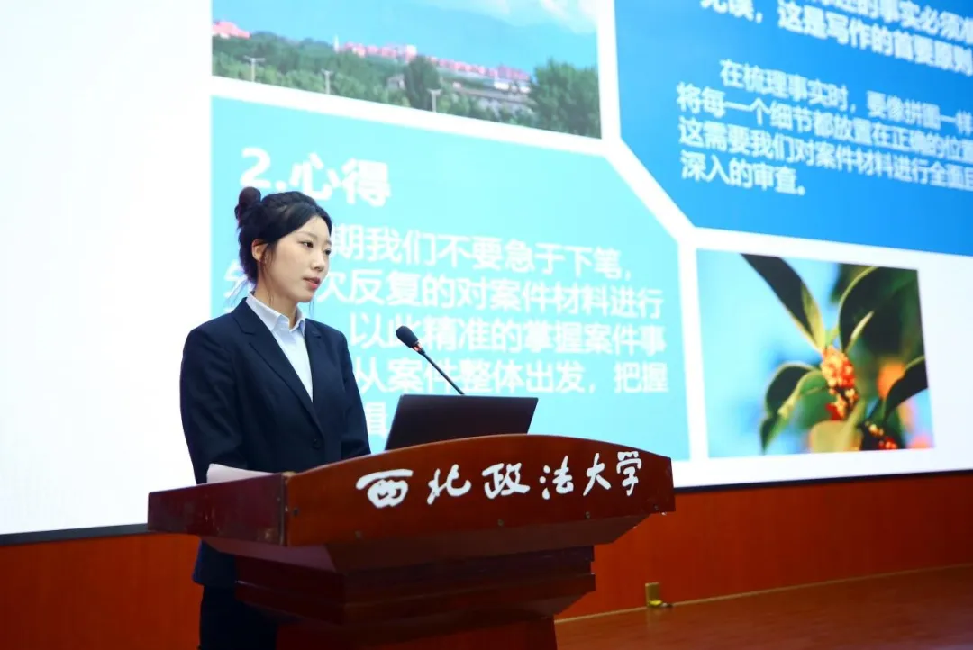 获奖代表梁琪、孙楠、胡欣怡分别展示了自己的参赛作品并分享写作心得。陕西省委党校(行政公司)教师衡飞玲、西北大学法公司(知识产权公司)副经理崔玲玲、北京市安理(西安)律师事务所专家律师高志杰分别进行了精彩点评。