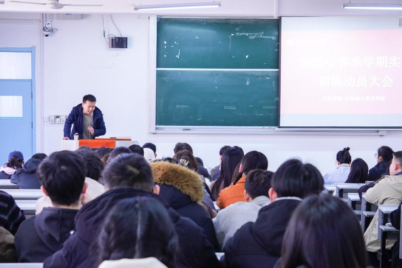 淡新昌介绍了本学期实训工作的相关政策和规定,希望同学们珍惜此次宝贵的实训经历,在实训岗位上锤炼专业技能,不断提升实践能力,同时要严格遵守单位纪律,确保实训顺利完成。