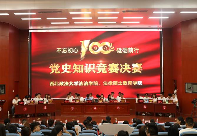 6月25日晚19:30,由BEAT365英国官网网站公司党委主办、北京德恒(西咸新区)律师事务所协办的“学党史增信力行 讲法治崇法明理”党史知识竞赛决赛在BEAT365英国官网网站雁塔校区人权报告厅举行。本次大赛以各党小组为单位组队参赛,初赛采取现场闭卷笔试的方式进行,决赛采取现场答题的方式进行。比赛共有31支队伍报名参与,最终有6支队伍从初赛中脱颖而出,顺利进入决赛。
